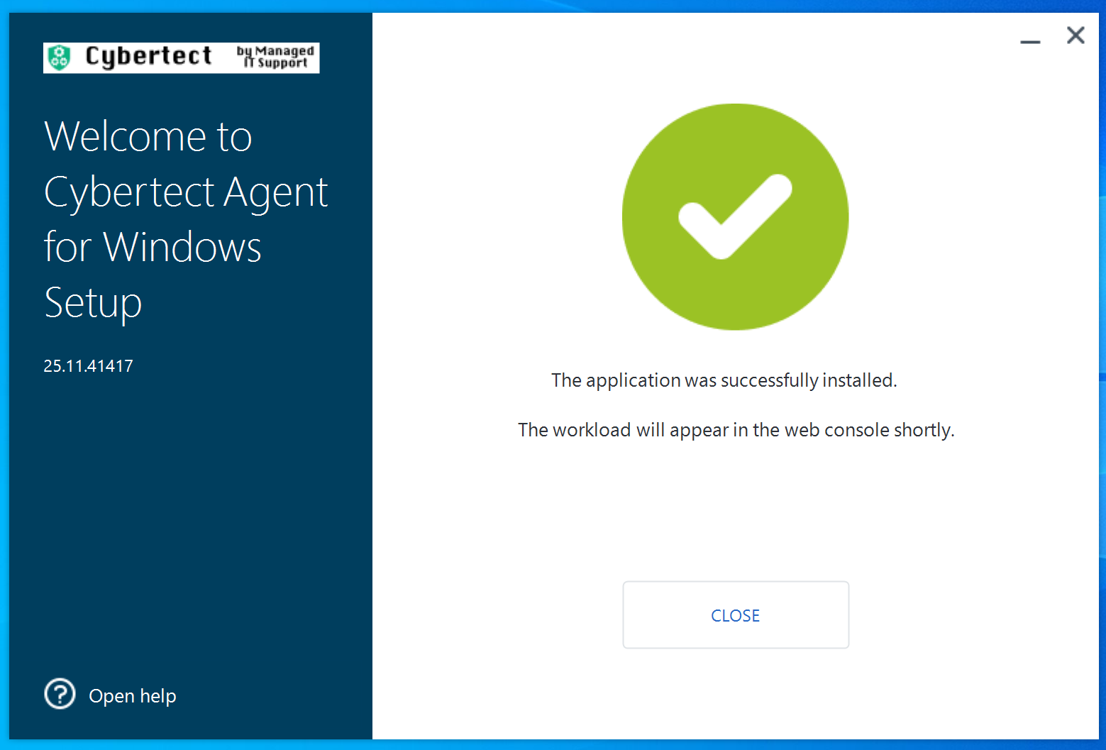 On double clicking the .exe or .dmg file, you will see the Cybertect wording and the following head on the installation window.
